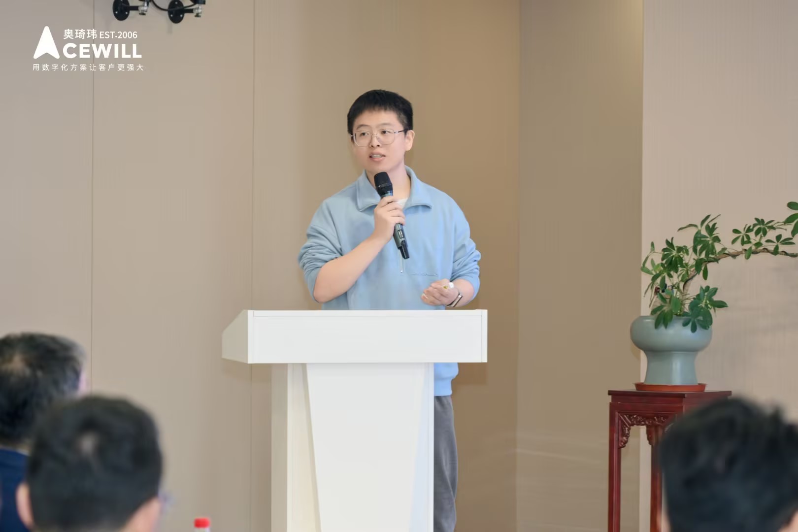 产研负责人赵正光系统阐述了2026年整体规划和产品布局,强调了奥琦玮产品线的全面性,涵盖智能版产品、财务与人力管理工具等。“我们计划为客户提供统一的登录入口,解决用户管理、权限管理和系统对接问题,”赵总介绍,“并根据客户反馈进行了重大产品调整。”