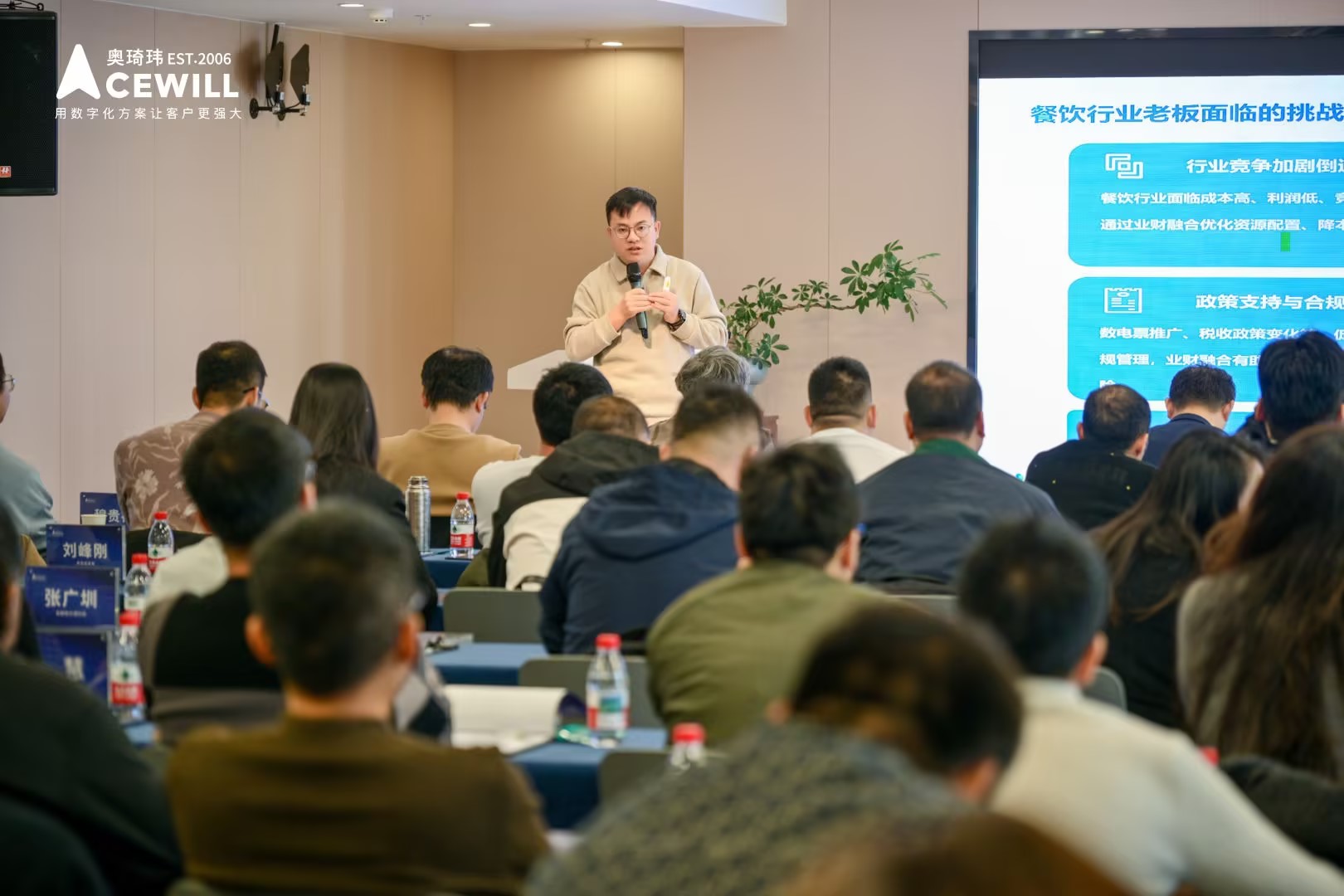 奥琦玮优秀合作伙伴张代泉先生分享了从工具销售到客户增长合伙人的成功转型路径。“我们开始深入理解餐饮行业的运营本质,重视与门店伙伴的合作,致力于提升其经营效率和盈利能力。”