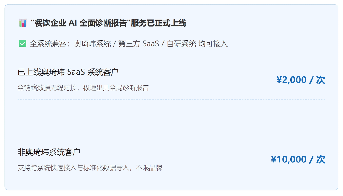 这不是随便接入一个通用大模型就能做到的——它的底气,是奥琦玮团队将多年沉淀的餐饮全链路管理经验,彻底转化为 AI 能听懂、能算清的业务 Skill。在利润越来越薄、容错率越来越低的今天,谁能最快穿透数据迷雾,谁就能在牌桌上赢到最后。